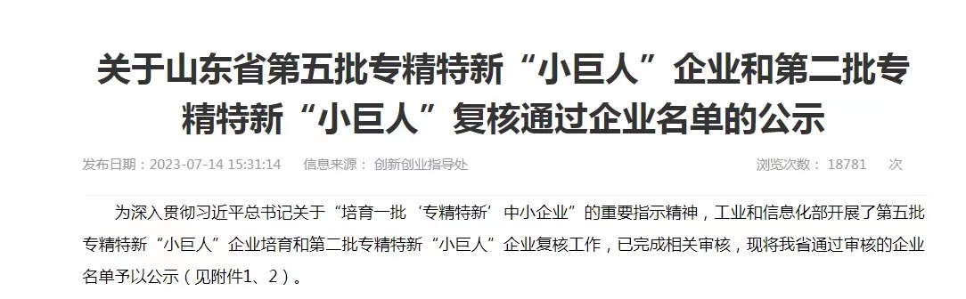 近日,國家工業和信息化部開展了第五批專精特新“小巨人”企業培育,日照天一生物醫療科技有限公司通過審核。