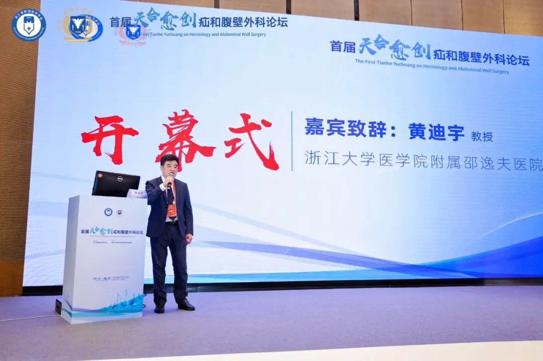 中華醫學會外科分會疝與腹壁外科學組組長、複旦大學附屬華東醫院唐健雄教授擔任大會主席,浙江大學醫學院附屬邵逸夫醫院黃迪宇教授擔任大會執行主席。開幕式由複旦大學附屬華東醫院唐健雄教授、浙江大學醫學院附屬邵逸夫醫院黃迪宇教授發表開幕致辭,強調疝外科的微創化、規範化是未來發展方向,本次會議能夠促進學術交流,推廣新技術、新理念,助力臨床醫生提升診療水平,推動疝與腹壁外科的不斷進步。