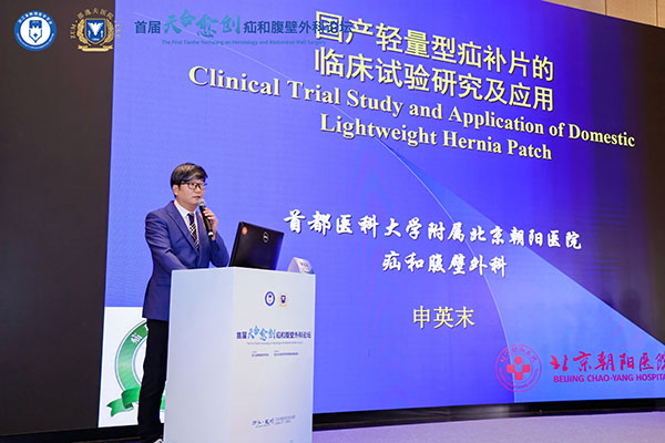 首都醫科大學附屬北京朝陽醫院申英末教授作《國產輕量型疝補片的臨床試驗研究及應用》專題演講,以天一生物超輕質大網孔及防粘連係列產品作為典型案例進行分析。產品憑借其創新的設計、優化的材料配比等優勢,展現出優異的生物相容性和穩定的力學性能,獲得與會專家的一致認可。